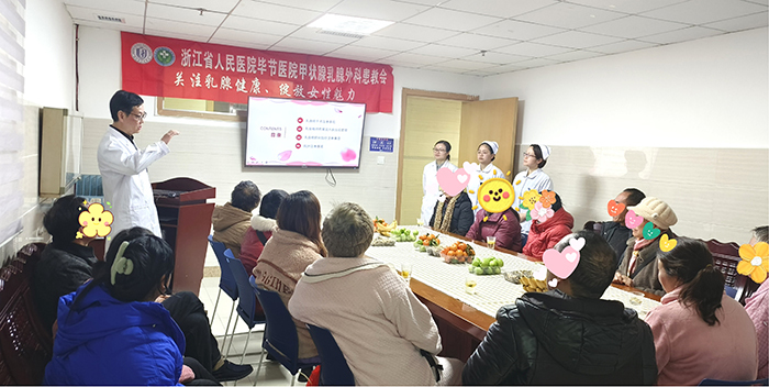 甲状腺乳腺外科积极开展患者健康宣传讲座,参加毕节市电视台《名医来解答》健康知识科普3次,为全市女干部举行妇女健康宣传讲座1次,深入基层开展义诊活动7次,科室医护人员制作的《乳腺癌健康知识宣教片》项目入选贵州省科普库;组织患者开展患教活动,在医患交流中增加患者战胜疾病的信心;提升优质护理服务,指导乳腺癌患者术后功能康复训练,做到癌症规范化、全程化管理;针对很多患者出现的焦虑、紧张、不安等问题,科室安排医生对患者开展心理疏导,用医者仁心让病患安心。