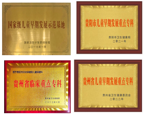 贵阳市妇幼保健院儿童保健科是集保健、预防、管理、科研和教学为一体的临床科室。科室技术力量雄厚,人员构造合理,工作人员共55人,其中有博士2人,硕士10人,主任医师4人,治疗师17人,护理人员13人。科室是全国首批、贵州省唯一的国家级儿童早期发展示范基地,科室2021年、2022年、2023年先后成为市级、省级儿童早期发展重点专科、省级重点临床专科建设单位。2022年获评为贵州省残疾儿童康复骨干机构,同时成为全国首批孤独症防治规范化建设项目示范单位,全省规模最大的医教结合的开展发育障碍性疾病诊断、干预治疗、教学示范、临床研究的专业干预中心。也是贵州省技术力量最强、亚专科发展最全面的儿童早期发展服务团队,长期致力于推动全省儿童早期发展及儿童保健事业发展。