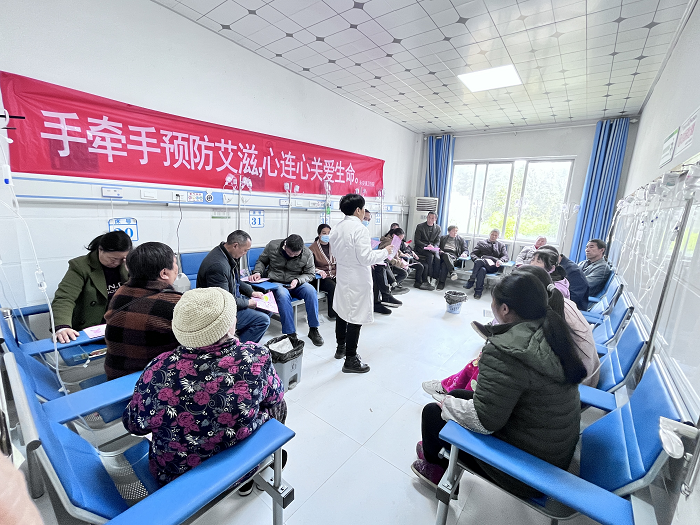 近日,凤冈县永安镇卫生院医务人员在院内开展艾滋病防治知识宣传活动。
