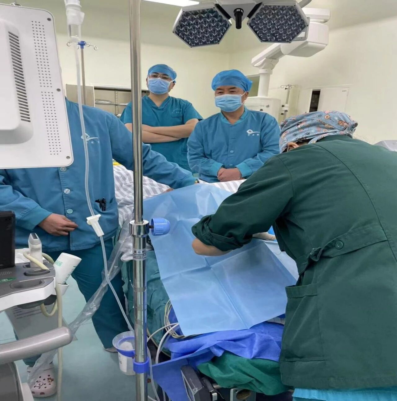在曾庆繁院长、博士生导师兼学科带头人指导下,徐金富主治医师、雷璇住院医师行体表心脏超声。
