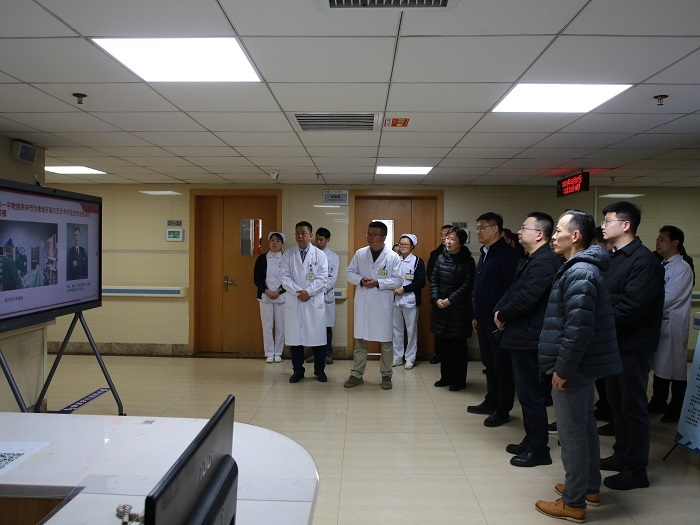 座谈会后,荆州市卫生健康委考察组一行到浙毕医院肝胆胰外科、胃肠外科、泌尿外科实地调研,认真听取各科室相关负责人与派驻专家介绍工作开展情况后,与吴国春及医院在家领导班子成员就国家区域医疗中心建设推进经验展开深入研讨交流。