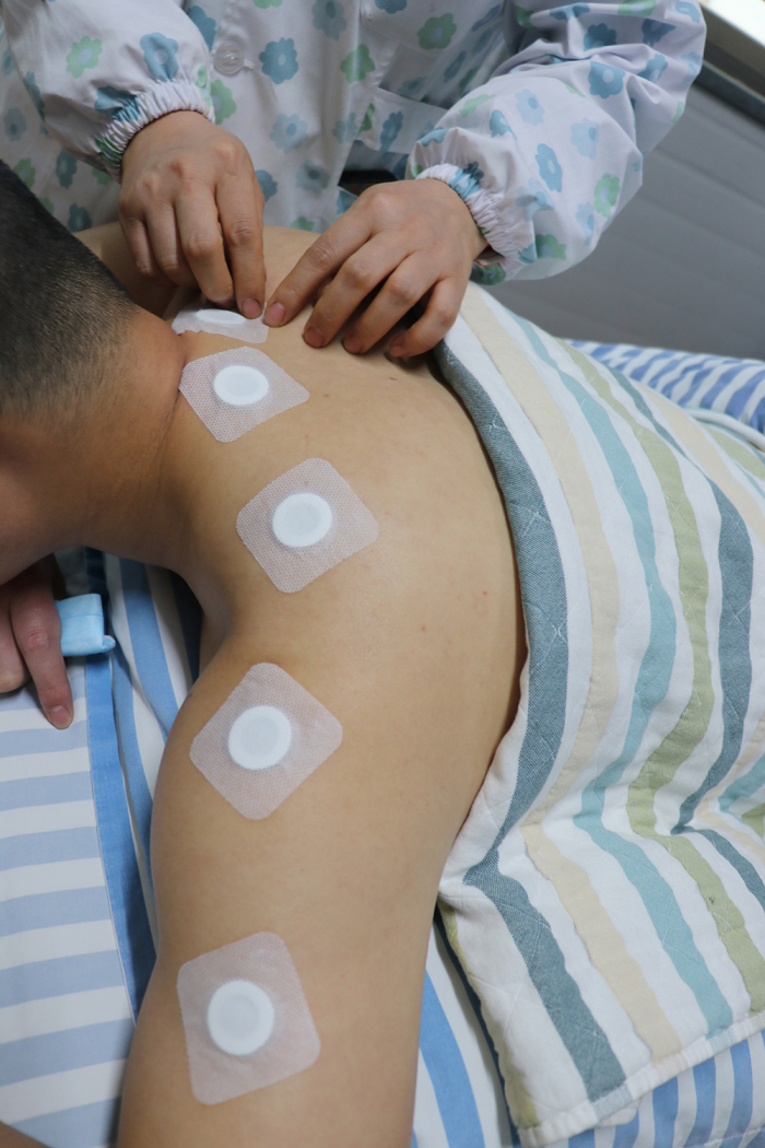 入院后予中频脉冲治疗颈肩部及左上肢缓减局部肌肉痉挛、理气活血止痛治疗;颈椎牵引减轻局部神经根卡压;普通针刺疏通经络止痛治疗;药棒穴位按摩理筋整复、通络止痛;穴位贴敷除湿、活血通络;药物罐除湿通络止痛治疗;中药内服以祛风散寒、除湿通络。现经5天系统治疗后患者颈肩部无疼痛不适,左上肢肘关节轻微疼痛,疼痛已经不影响生活,基本恢复正常。
