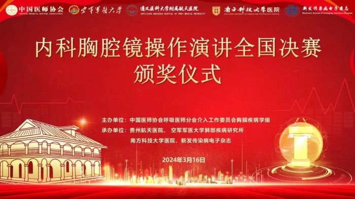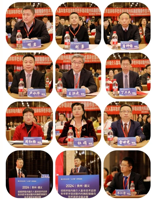 同时,中华医学会结核病学分会主任委员、中国CDC结核病防治临床中心、北京市结核病胸部肿瘤研究所、首都医科大学附属北京胸科医院结核病临床医学中心主任唐神结教授,中华医学会结核病学分会侯任主任委员、国家感染性疾病临床医学研究中心副主任,深圳市第三人民医院肺病医学部主任卢水华教授,中华医学会结核病学分会副主任委员、贵州省结核病学分会主任委员杜娟教授,中国医师协会呼吸医师分会介入工作委员会胸膜疾病学组副组长曾奕明教授,中国防痨协会常务理事、中国防痨协会基层分会副主任委员、贵州省疾病预防控制中心副主任、贵州省防痨协会理事长雷世光教授,中华医学会结核病学分会呼吸内镜介入专业委员会主任委员、北京中医药大学东直门医院呼吸病中心主任王洪武教授,中华医学会结核病学分会呼吸内镜介入专业委员会主任委员、首都医科大学附属北京胸科医院内镜诊疗中心主任丁卫民教授,北京医学会呼吸内镜和介入学分会主任委员张杰教授,《新发传染病电子杂志中国科技核心期刊》主编陆普选,中国医师协会呼吸医师分会介入工作委员会胸膜疾病学组副组长、南方科技大学医院呼吸介入中心主任周红梅教授,贵州航天医院副院长、遵义市呼吸内科专业医疗质量控制中心主任委员廖江荣教授等专家共同为内科胸腔镜操作技术全国决赛进行颁奖。
