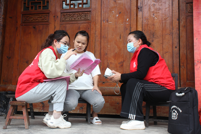 岑巩县妇幼保健院医务人员和“家庭医生”在岑巩县龙田镇都素村小八丈组为孕妇开展产前医疗服务。胡国鑫摄