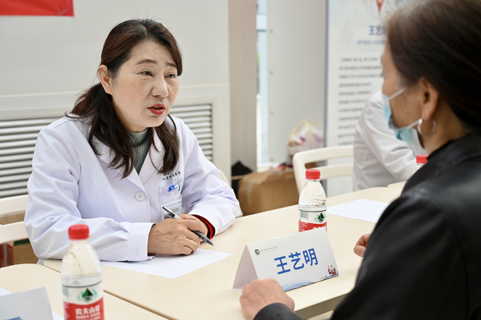 3月21日早,贵州医科大学附属医院门诊大厅,参加义诊的群众向医生诉说失眠的烦恼。
