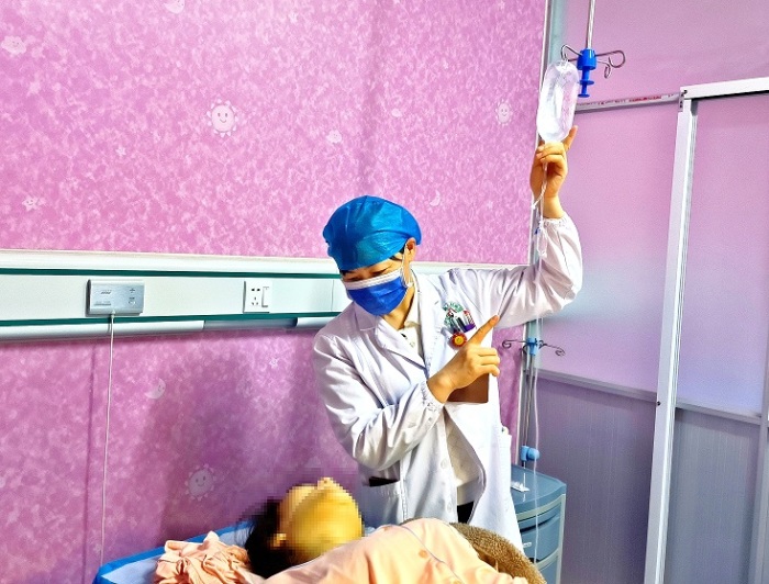 20:10患者抵达麻江县人民医院,入院时患者已神志模糊,贫血貌,随时有生命危险。妇科杨静主任紧急向带班领导报告相关情况的同时立即为患者开通绿色通道,组织急诊科和妇科医护人员开展抢救,调动输血科紧急配血,功能科进行床旁彩超检查,多条静脉输液通道迅速开通,扩容、止血、输血,清除宫腔残留胎盘......一场生与死的较量拉开了帷幕,经过全体医护人员15分钟的奋战,患者生命体征逐渐平稳,在生与死的搏斗中,产妇的宫缩逐渐恢复,流血逐渐减少,血压回升,生命终于得到了护佑。