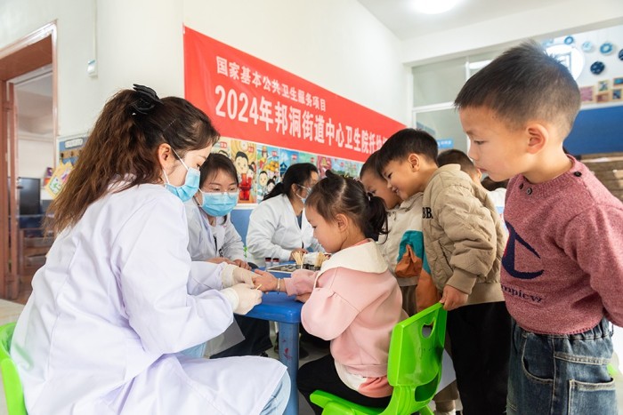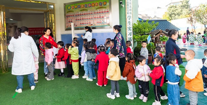 首页 > 新闻中心 > 卫生工作动态 > 正文 天柱:体检入园 呵护成长 来源:贵州健康报 时间:2024-04-02 浏览次数: 近日,天柱县全面启动3-6岁儿童健康检查工作。此次体检项目包括视力筛查、体格检查、血红蛋白检测和发育评估等。体检后,医务人员对各项数据进行综合评估,记入儿童健康档案,并将结果及时反馈给老师和家长,实现早发现、早诊断、早干预。图为邦洞街道中心卫生院医务人员在县第六幼儿园给小朋友进行体检。(本报通讯员 龚偕延)编 辑:石 磊二 审:杜 明三 审:龙 艳 分享到: