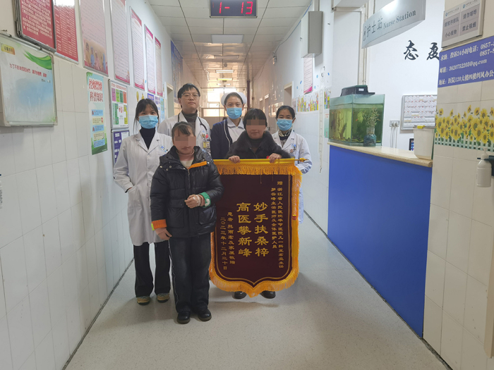 再次与患儿家属详细沟通并取得同意后,12月28日,在吴梅指导下,经全身麻醉后,罗云峰为患儿行肠镜下息肉切除术(EMR术+息肉残端下金属铗封闭术),手术过程顺利,术后观察无特殊不适,第三日患儿即出院。出院当日,患儿奶奶赠送一面锦旗表达对医护人员的感谢。