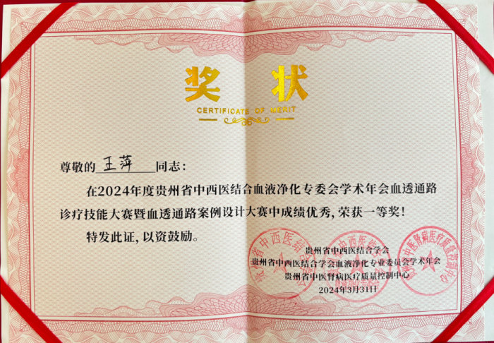 开阳县人民医院王萍荣获全省中西医结合血透通路案例设计一等奖