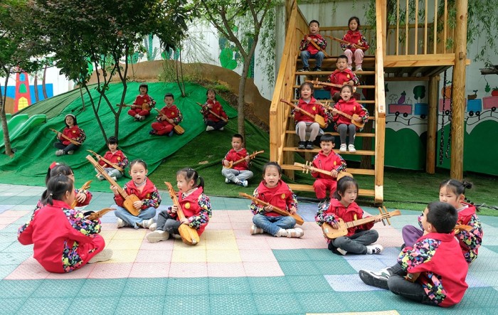 孩子边弹边奏唱山歌