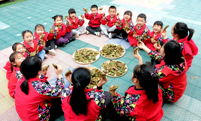 孩子们包粑开心场景