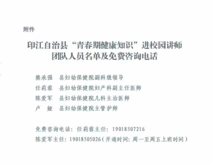 4月9日,印江自治县卫生健康局联合县教育局、县计划生育协会、县妇幼保健院等部门到印江二中开展青春期健康知识进校园活动。该校八年级5个班共计300余人参加。