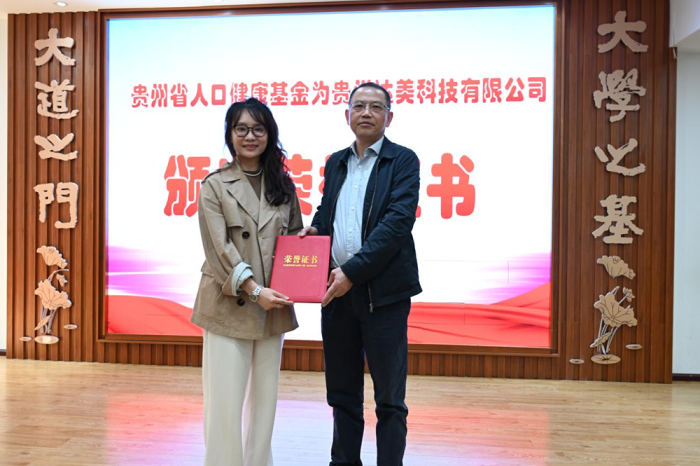 当天下午,捐赠仪式在省府路小学总校区举行。省人口健康基金会向学校捐赠仪器,并为爱心企业贵州达美科技有限公司颁发荣誉证书。省人口健康基金会、贵州达美科技有限公司相关负责人、贵阳市省府路小学行政团队、党员、团员等共同见证捐赠。