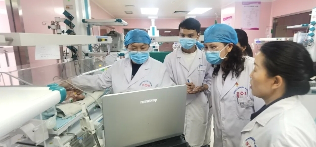 重庆医科大学附属儿童医院超声副主任王荞教授在在新生儿科进行新生儿头颅、心脏、肺脏、胃肠道超声会诊