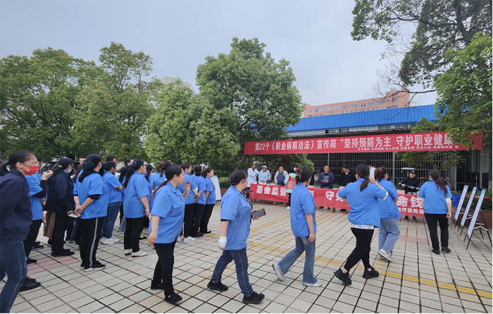 活动现场悬挂“坚持预防为主,守护职业健康”主题标语,设置咨询台、职业健康知识展板,通过发放宣传资料、健康义诊等多种形式宣传,受到前来咨询的企业职工热烈欢迎。