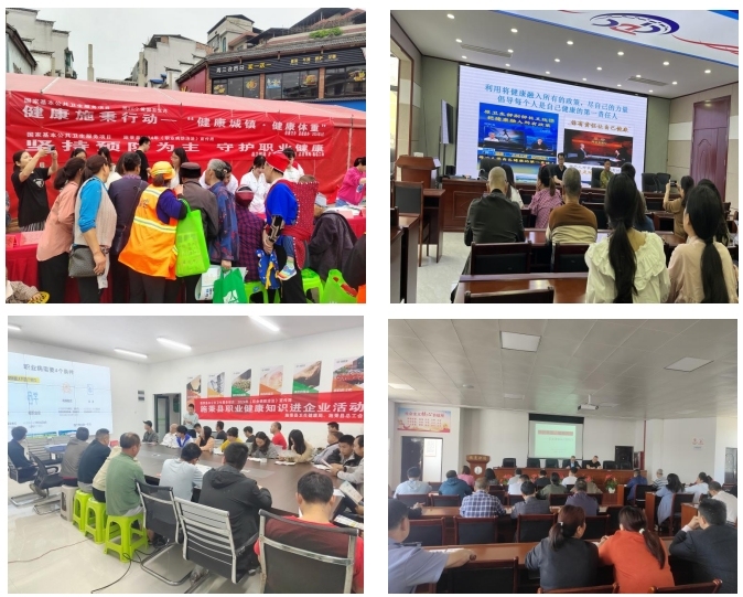 主题宣传凝共识。此次活动由健康施秉推进办牵头,联合人社、民政、医保、工会等部门,采取职业健康宣讲培训、播放宣传视频、现场科普咨询解答、发放宣传资料、健康义诊等多种形式深入推进职业健康知识进机构、进企业、进学校、进乡村、进社区“五进 ”活动,大力普及职业病防治、职业健康及工伤保险等知识,倡导和动员全社会共同关注劳动者职业健康,凝聚四方力量,为实现施秉县“十四五 ”职业病防治规划各项目标任务提供强大动力。