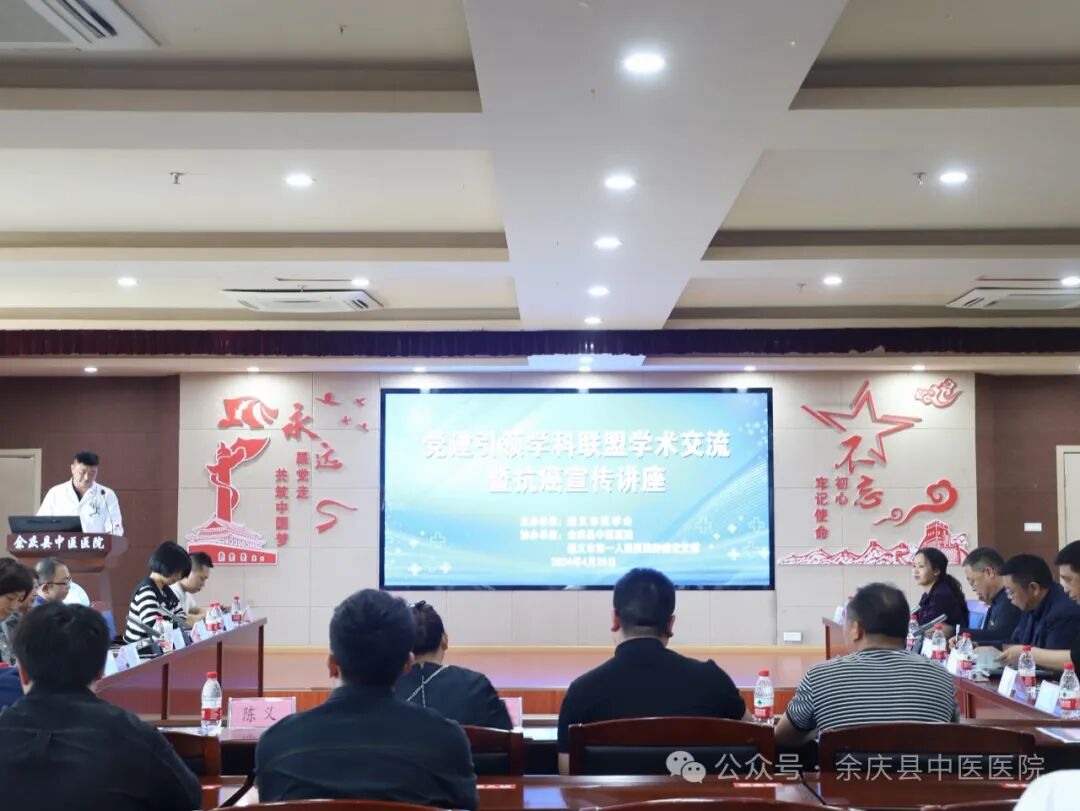 4月26日下午,遵义市第一人民医院肿瘤党支部与余庆县中医医院共同举办了“党建引领学科联盟学术交流抗癌宣传讲座”。学术讲座上,余庆县中医医院党委书记夏坤武对遵义市第一人民医院各位专家的到来表示热烈的欢迎,同时希望通过学术讲座与交流,能够让两家医院的合作更加深入,友谊更加深厚和持久,并要求所有参训的人员要端正学习态度,认真听、多思考、多请教,为全县肿瘤诊疗能力提升奠定坚实基础。
