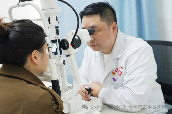 诊室里,一位博士正带着贵医大三附院眼科团队为患者看诊,眼神里充满坚定与关切。他是赵粟,贵医附院眼科博士、博士研究生导师、主任医师。