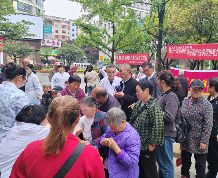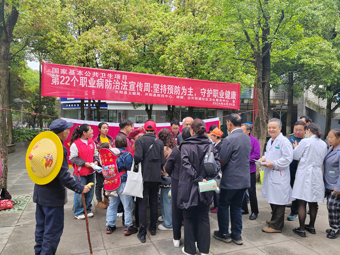 为深入贯彻和宣传《职业病防治法》,普及职业病防治知识,提高用人单位和劳动者职业病防治法律意识,提高全社会对职业病防治工作重要性的认知,切实保障广大劳动者的职业健康权益,有效促进经济社会和谐发展,从而进一步推进开阳县职业病防治工作,4月25日,县卫健局、县民政局、县人力资源保障局、县医保局、县总工会、县疾控中心、县卫生健康执法大队、县中医院等部门在云开广场开展第22个《职业病防治法》宣传周活动。