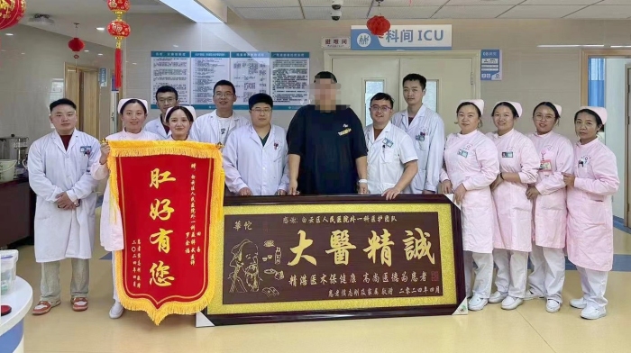4月29日,患者候先生将一面刻有“大医精诚”的牌匾和写着“肛好有你”的锦旗送到白云区人民医院外一科医护人员手中,以感谢他们精湛的治疗技术和优质的护理服务。