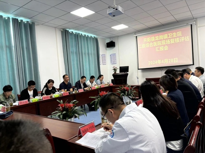 复核评估汇报会上,欧波代表县委、县政府对专家组的到来表示热烈欢迎,希望专家组予以悉心指导,帮助医院提升服务能力,并要求县卫健局要高度重视此次二级综合医院认定工作的复核评估,全面进行自查自检,扎实做好各项工作,为整体提升开阳基层医疗卫生服务能力和人民群众健康水平做出应有的贡献。龙岗镇卫生院、楠木渡卫生院主要负责人对二级医院创建工作情况进行了汇报。开阳县卫健局局长汇报了申报认定工作及初核情况。评估工作组副组长刘勇介绍评估工作流程。贵阳市卫生健康局副局长黄雪梅对评估工作作相关要求。评审专家组分成医疗质量、护理质量安全管理、药事和药物使用管理、医院感染管理等六个组对照13项84个评价要点对2家卫生院二级综合医院认定进行现场复核评估。
