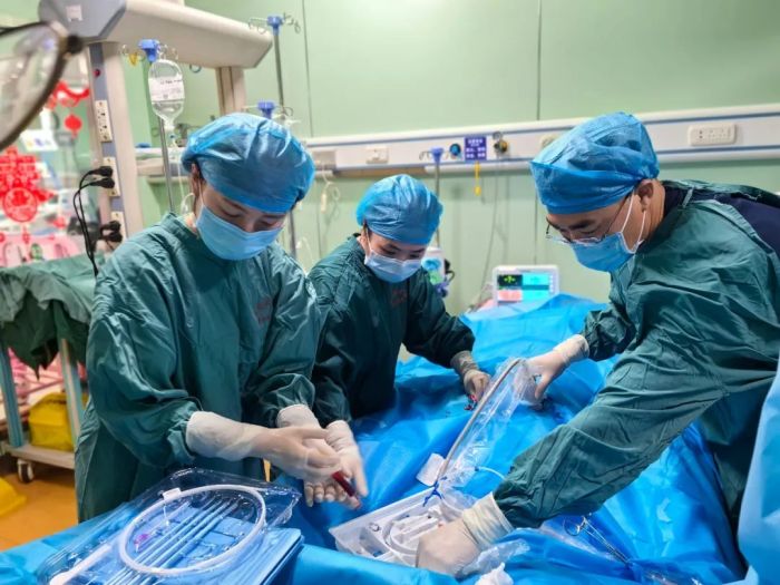 此次患者是一名14岁女孩,因“乏力、纳差1月,加重4天”于2024年4月23日16:48入院。入院前于院外诊断甲状腺功能减退症。入院完善相关检查提示:严重电解质紊乱伴重度脱水,心脏收缩功能下降,在对症治疗过程中,患者于4月24日8:30患者出现心脏骤停、瞳孔散大。经气管插管、心肺复苏后恢复自主心跳,瞳孔恢复。患者经积极对症支持治疗两天后仍无好转,病情进行性加重,床旁超声评估患者心脏收缩功能下降呈进行性恶化表现,反复出现恶性心律失常,心脏骤停,心源性休克不能纠正,并发严重肺水肿、代谢性酸中毒。贵医大二院重症医学科陈若冰主任带领ECMO团队成员对患者进行评估后,认为患者心功能急剧恶化,反复多次出现心脏骤停,经抢救后瞳孔恢复正常,循环极度不稳定,顽固性的心源性休克不能纠正,同时无相关ECMO辅助支持相关禁忌症,于2024年4月25日20:30启动静-动脉体外膜肺氧合术(V-A ECMO)辅助支持治疗。