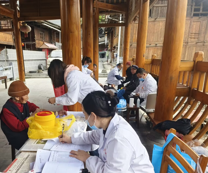 “当前处于农忙时节,为更好地服务群众,早上8点我们就到村里了,主要面向不方便出门和65及以上老年人免费健康体检,接下来我们将陆续前往各个村寨进行义诊活动”。志愿者刘荣煌医生介绍道。
