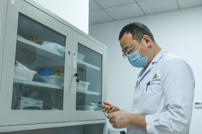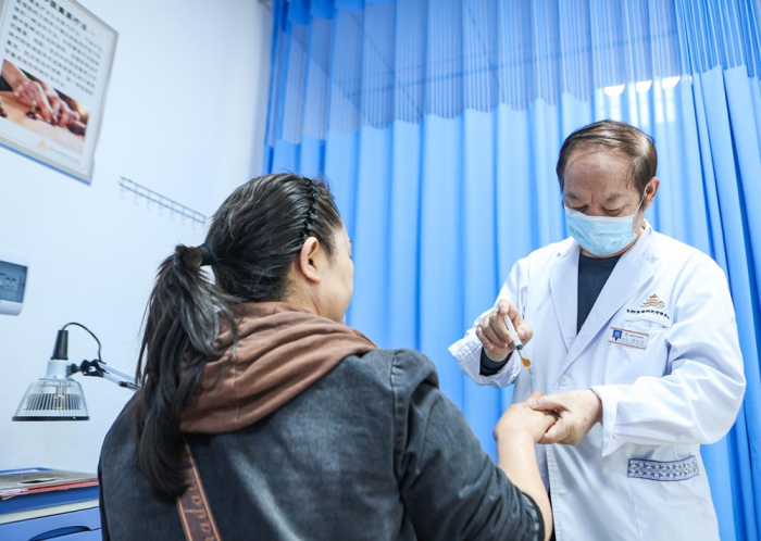 在贵阳市南明区中医医院民族医药传承工作室,胡正忠医师正专注地为患者进行治疗。他一丝不苟,用心呵护每一位患者的健康,传承和发扬着民族医药的精髓。