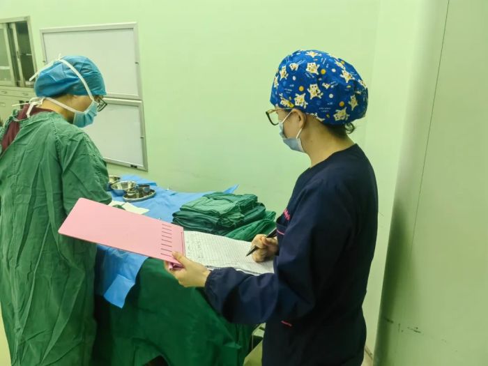 为了保证手术患者手术安全,她严格培训科内低年资护士,不断强化练习手术各个环节、流程,以便能熟练应对各类手术。她和战友们接送病人、准备手术器械、手术间、摆体位、消毒、铺单、配合手术的器械传递……无影灯下的她们必须高度集中注意力配合医生完成手术,不容出现一丝的差错。每例手术结束后,严格按照要求处理器械和医疗垃圾,消毒杀菌,直到完成最后收尾工作。“麻醉科的专科性很强,工作性质也很特殊,最重要的是它是一个不容差错的地方。”