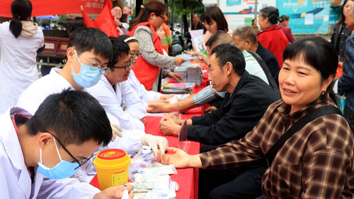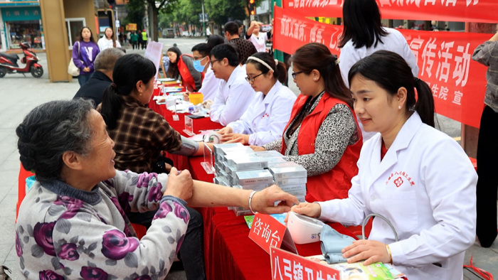 在集中宣传活动现场,工作人员通过悬挂宣传横幅、发放宣传资料等方式,向过往群众讲解自然灾害防范、自救互救技能、卫生防疫等相关知识。医护人员还耐心地为群众量血压、测血糖,并解答疑问、讲解健康生活等常识,为大家提供常见病专业的预防知识宣传讲解。