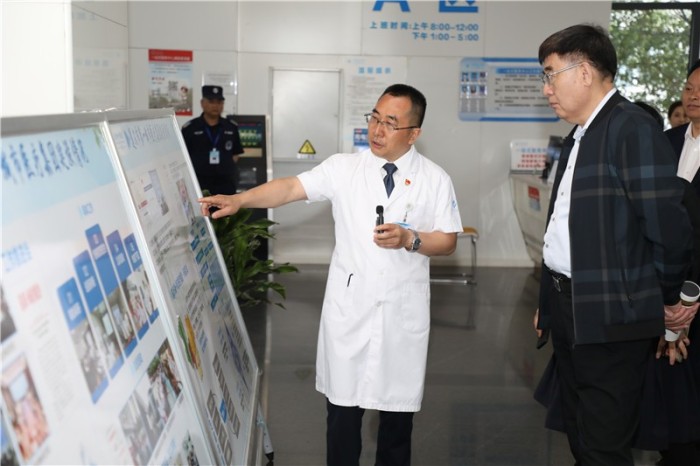 调研组一行听取了遵义市第一城市医疗集团四级医疗服务架构、十二个专业管理中心建设、八大优质医疗资源共享、慢病管理、专家坐诊、中医适宜技术开展、双向转诊、公立医院改革与高质量发展示范项目、医院建设等工作汇报,并参观了集团总院影像科、检验科、神经外科诊疗中心等。