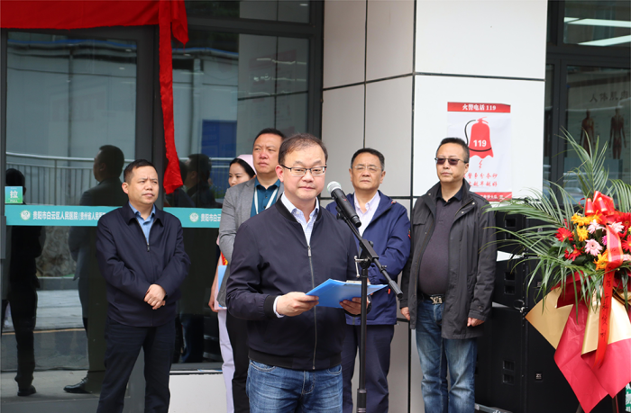 贵州省卫健委党组成员、副主任,省中医药管理局局长安仕海,贵阳市卫健局党委委员、市卫健综合行政执法支队队长刘毅峰,白云区人民政府副区长陈光明出席;区卫健局党委书记、局长,区人民医院党委书记李飞主持揭牌仪式。