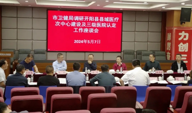 5月7日,贵阳市卫健局党委书记娄果、局长郭莉莉一行到开阳县人民医院调研三级综合医院筹备有关工作,并组织召开座谈会,开阳县委副书记、县长吕槐乐,副县长欧波及县直相关部门参加。