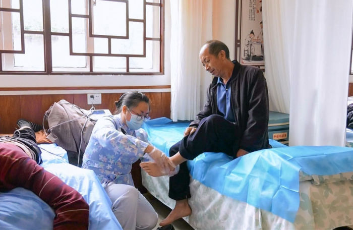 琊川镇琊川社区居民薛洪俊说:“之前就是这只脚一直都在痛,走路都困难,我来医院扎了几次针灸,田玉护士长又给我按摩,现在脚不痛了。”