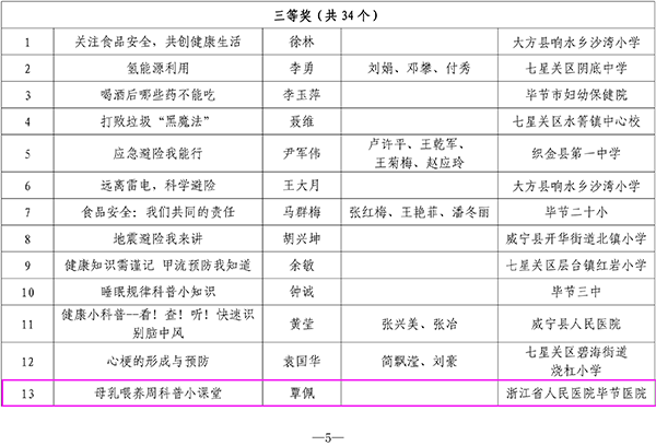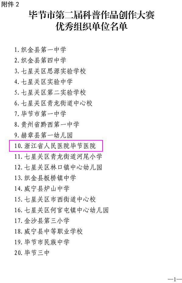 近日,毕节市科学技术协会办公室印发《关于公布毕节市第二届科普作品创作大赛获奖名单的通知》,浙江省人民医院多个参赛作品获奖,创下科普佳绩。