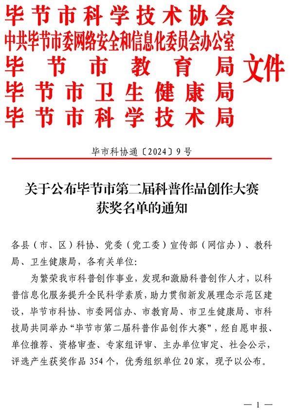 毕节市第二届科普作品创作大赛成绩揭晓!浙江省人民医院毕节医院多作品获奖