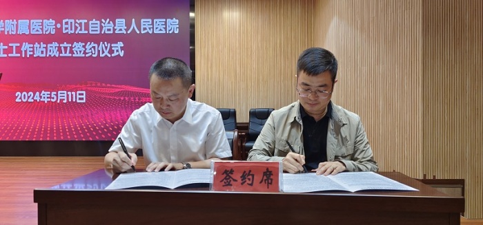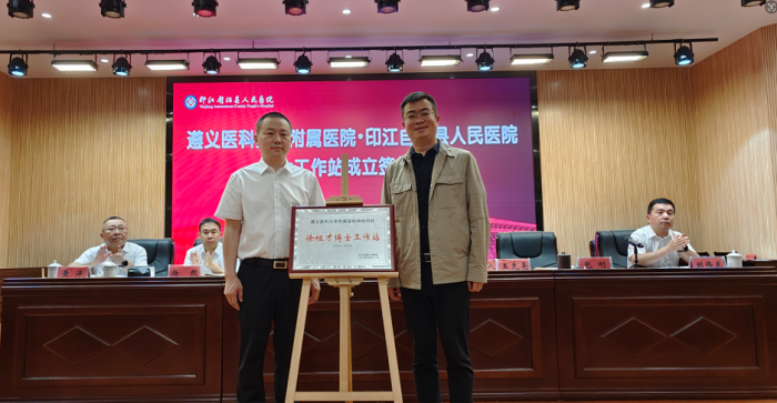 为促进医院学科建设,进一步培养高层次科研人才,促进医院内涵质量持续提升,助力健康印江事业发展,印江自治县人民医院依托与遵义医科大学附属医院紧密型医联体建设,合作共建神经内科徐祖才博士工作站。5月11日,印江自治县人民医院党委副书记、院长包刚和博士工作站团队代表徐祖才博士共同签订合作协议并为“徐祖才博士工作站”揭牌,这标志着该院“博士工作站”正式启动。