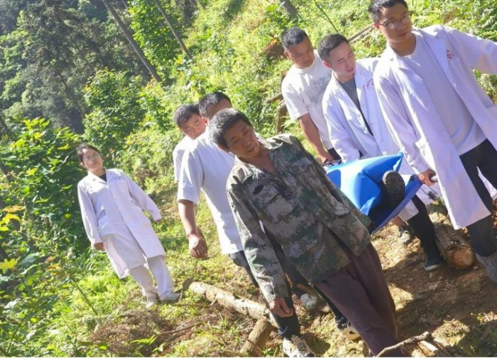 急救小组在短时间内到达现场,医务人员对患者进行简要评估,给予急救包扎、止血等基本处理,在确保患者安全的前提下,利用担架搬运将受伤群众从险峻的山路上平稳地运送下来。