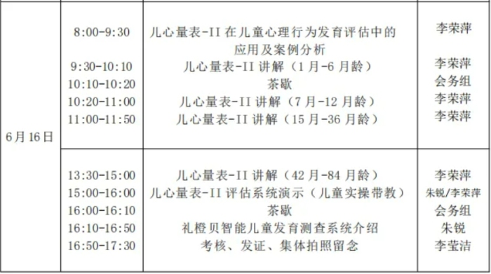 (一)《儿心量表-II》(0岁〜6岁儿童发育行为评估量表):是我国首都儿科研究所自主编制的儿童发育诊断性量表。第一版从90 年代初开始在我国得到了广泛应用,目前根据社会发展的需要,在十二五支撑项目的支持下,对第一版进行了全面的修订,制定了新的常模,使其科学性、可操作性更强,并具有良好的信度和效度。于2017年10月12日被卫健委批准为卫生行业标准(WS/T580-2017),2018年4月开始实施,2022年被卫健委指定为 0-6 岁儿童孤独症筛查复筛量表。《儿心量表-II》配备全新标准工具箱和配套计算机评估软件,本次培训由首都儿科研究所授权委托。