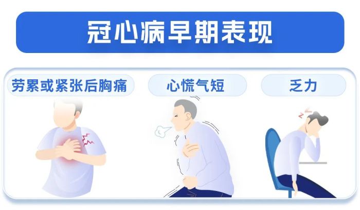 此时狭窄的血管已经让心脏供血不足,但身体早期症状非常易混淆,很容易被认作是“劳累病”,如频繁出现这些症状,建议就医排查病因。