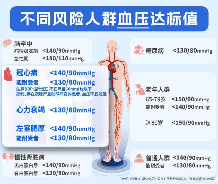每个人的血管破损、老化情况不同,血压、血脂的达标值也因人而异,一定要从自身情况出发,个性化管理血压血脂水平。