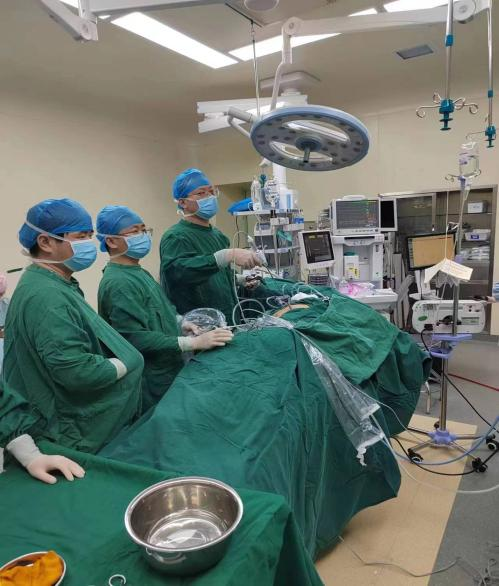 在遵义医科大学附属医院麻醉医师刘德行与该院麻醉科团队的协作下,东莞帮扶专家林浩群及泌尿外科医疗团队共同为吴女士实施了“腹腔镜下左侧肾上腺肿瘤切除术”。术中,解剖层次清晰、无副损伤,顺利完成了手术。患者术后恢复良好,现已康复出院。