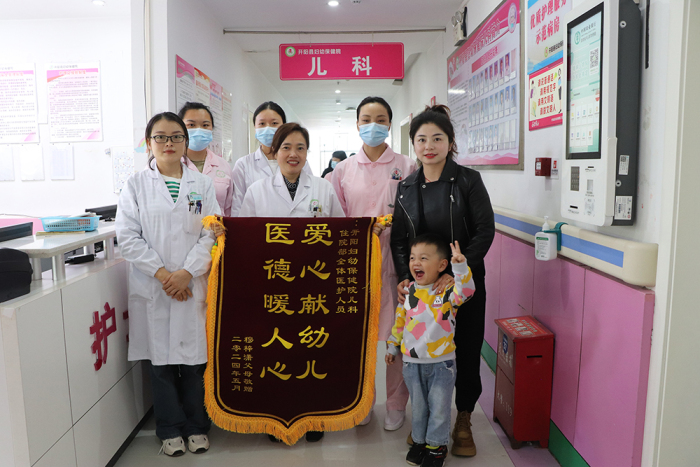 据了解,患儿穆宝宝因发热2天就诊于开阳县妇幼保健院儿科。入院后,经过儿科医护团队精心治疗和护理,症状很快得到改善,各项检查指标也回归正常,5天后康复出院。出院当天,穆宝宝家长送来一面印有“爱心献幼儿 医德暖人心”字样的锦旗,感谢儿科医护团队对孩子的精心治疗及细心呵护。
