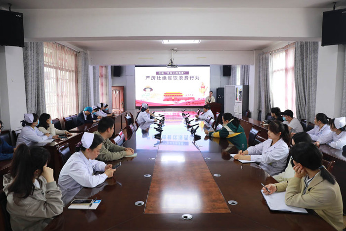 5月17日,浙江省人民医院毕节医院以“严厉杜绝餐饮浪费行为”为主题的节约能源资源专题培训会在院行政楼九楼会议室召开。