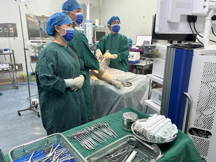 术中,沈平国及骨科团队运用关节镜由0.5cm微小切口进入膝关节内进行探查,视野清晰,通过微创操,历时1小时手术顺利结束。“之前听说这个囊肿要在腿上开刀留好长的疤,至少住院半个月,现在没想到只打了几个小孔就把囊肿取出来了!”术后第二天即可下地行走的易婆婆开心地说,她怎么也没想到,困扰了自己这么久的膝关节胀痛感竟然通过“不开刀”的情况完美解决。
