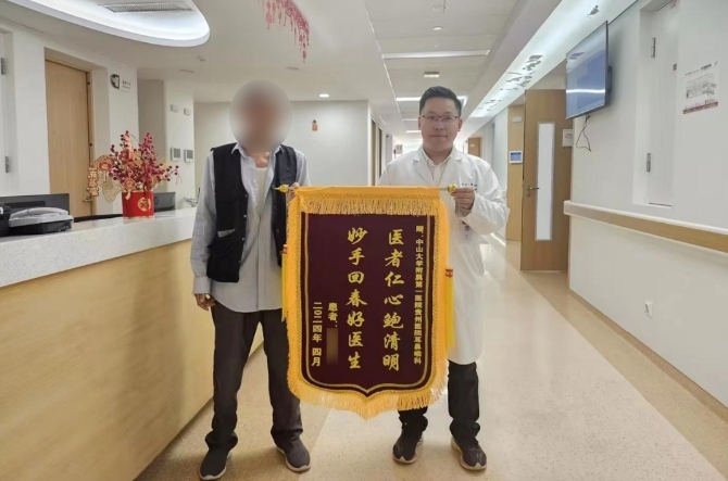 “鲍医生,谢谢您把我的病治好了。”出院后,为了表达对鲍清明的感激之情,杨先生及家属特意送上一面锦旗表达谢意。