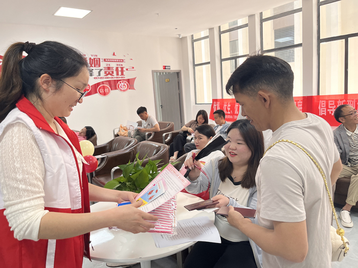 5月20日,三都自治县政务大厅民政窗口区人头攒动,一场特别的健康宣教活动在此举行。此次活动由三都自治县卫生健康局、民政局、计划生育协会、(医共体)妇幼保健院分院及优生优育指导中心等多部门联合主办,旨在为即将步入婚姻殿堂的新人讲解优生优育的健康知识。