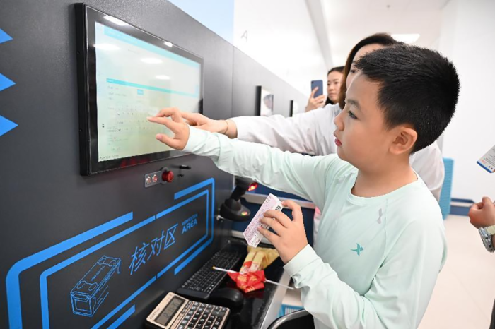 “我们要仔细地核对药品批号,然后将药品绑定到系统中,再把药箱放入设备入口,机械手臂就把药箱取走了。我第一次见到这么神奇的药房,下次有机会还想来!”刚刚学会给智能药房补药的小刘同学对记者说。