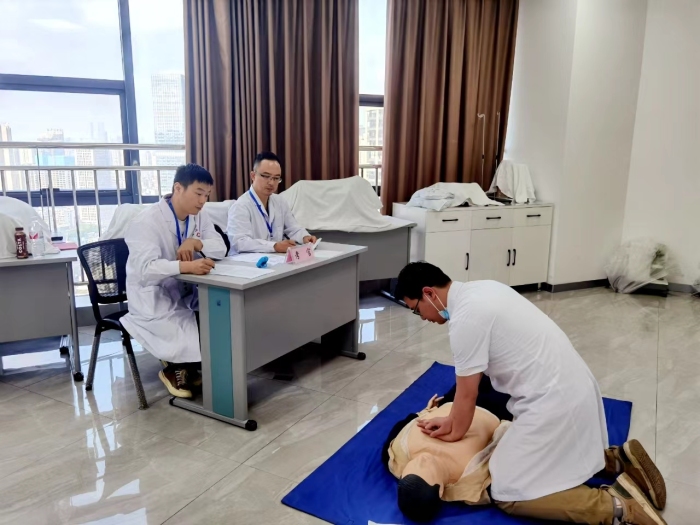 本次考核严格执行国家标准,采用客观结构化临床考核OSCE考站方式,设置心肺复苏、神经系统、临床技能、临床思维、临床沟通5个考站,每个考站2名考官独立评分,确保考核公平、公正、规范、系统。