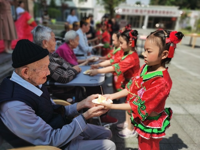 “六一”儿童节到来之际,为传承和弘扬中华民族尊老、敬老、爱老的传统美德,三穗县医养中心近日精心策划了一场别开生面的活动——特邀三穗县金钥匙幼儿园的小朋友们,与长者们共同举办“童心暖夕阳·稚爱共相伴”六一联欢活动及5月长者生日会,旨在通过儿童的纯真与活力,为老人们带去欢乐与温暖,进一步营造尊老爱幼的和谐社会氛围。